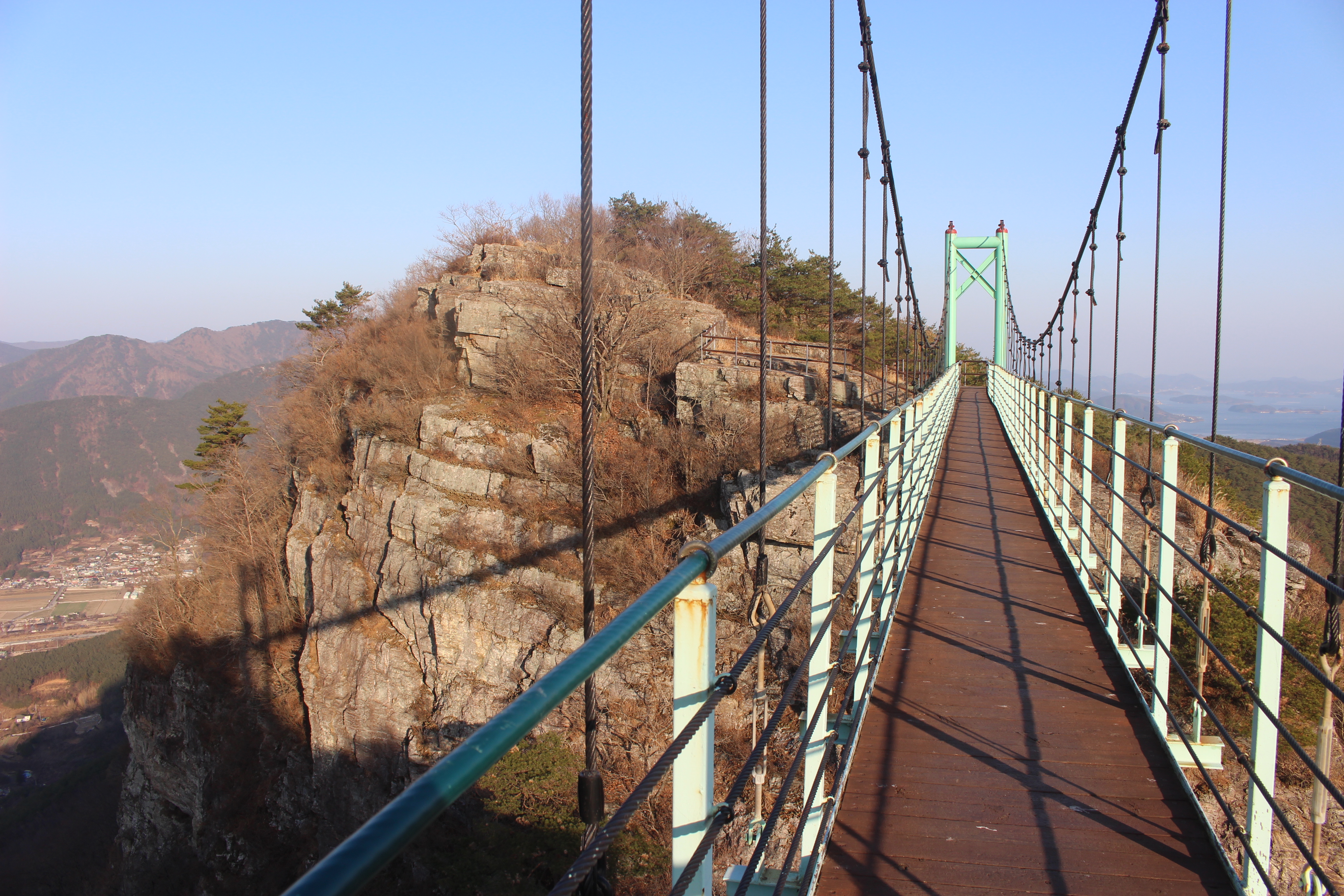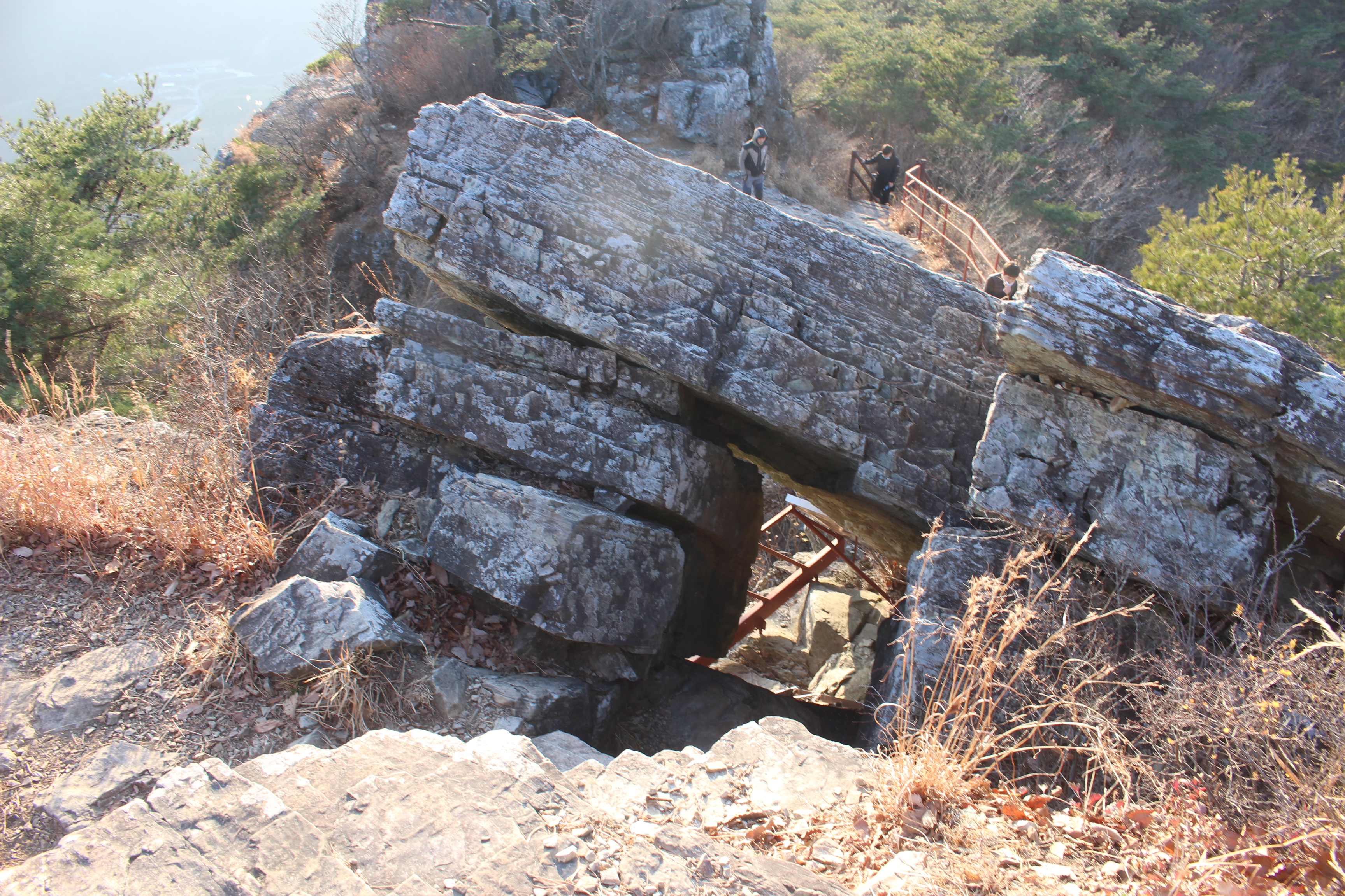 서쪽으로 이동하면 암봉과 암봉 사이를 구름다리로 연결하였는데 대단한 높이에 현기증이 일어난다.
